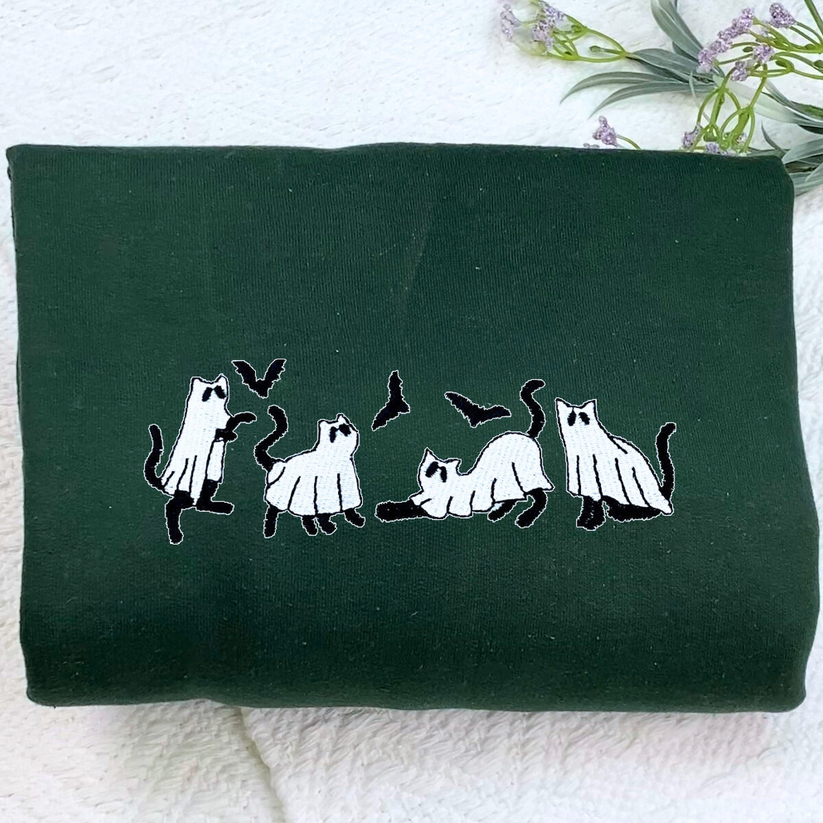 Black Cat Ghost Embroidered Halloween Sweatshirt
