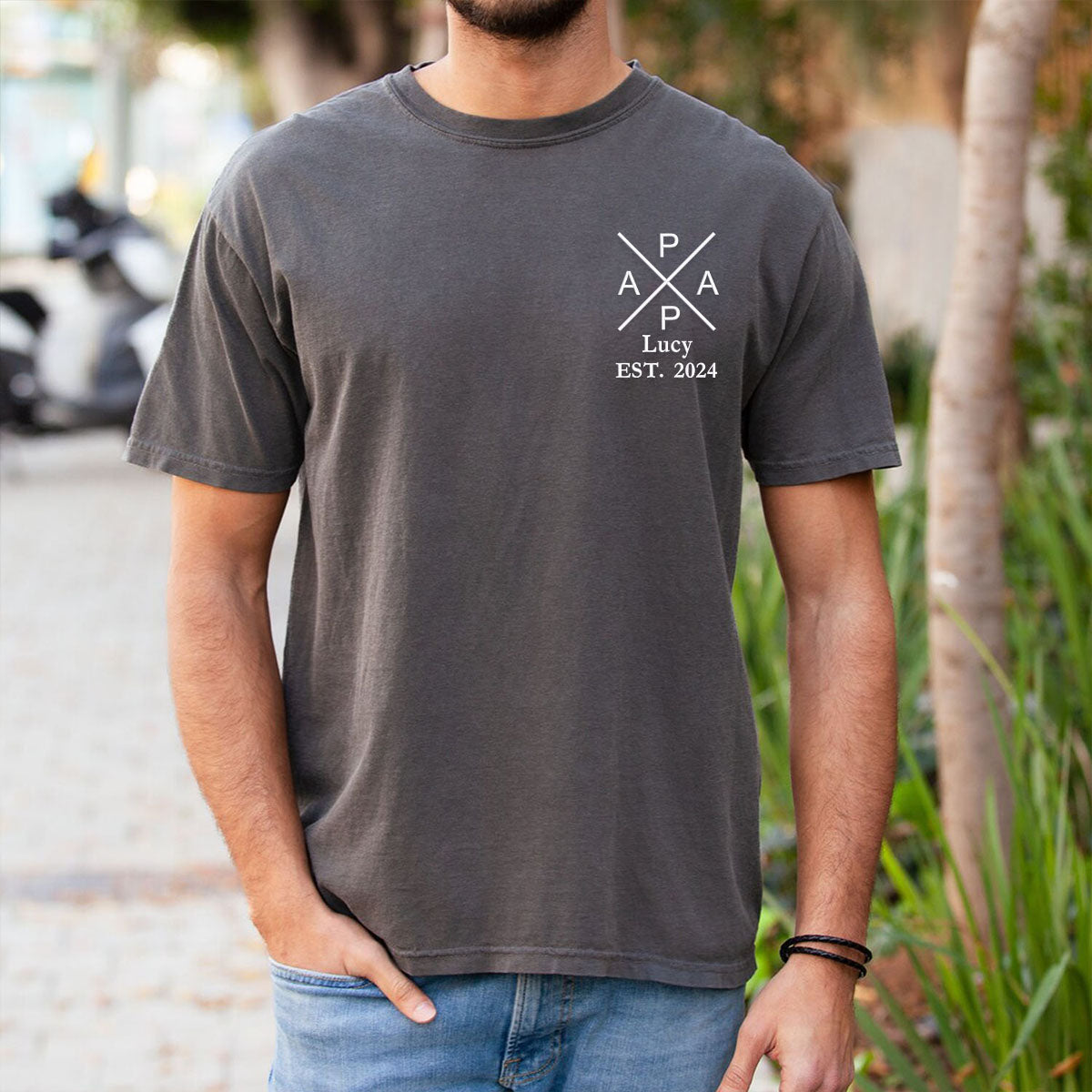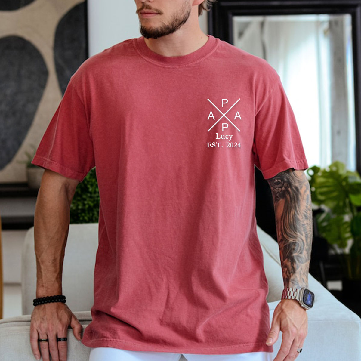 Step into the spotlight with our minimalist Papa Shirt designed especially for the man who holds the family together. This shirt doesnt just say Papa—it celebrates him with a stylish understated design featuring beautifully embroidered text that speaks volumes of his role within the family. Its not just a shirt; its a statement. CRAFTED WITH CARE WORN WITH LOVE Every thread of this shirt tells a story of craftsmanship and quality. Made from premium materials the Papa Shirt is soft to the touch yet durable enough to keep up with the rigorous demands of his day to day life. Whether hes fixing up the house or playing in the backyard this shirt stays comfortable and chic. A GIFT THAT KEEPS GIVING Give the gift of recognition and appreciation. This shirt is perfect for birthdays holidays or a simple gesture to let him know hes valued. Its enduring fit and timeless style render it adaptable for any event guaranteeing he experiences a sense of significance and affection each time he dons it. Celebrate Papa in style—pick up his new shirt.