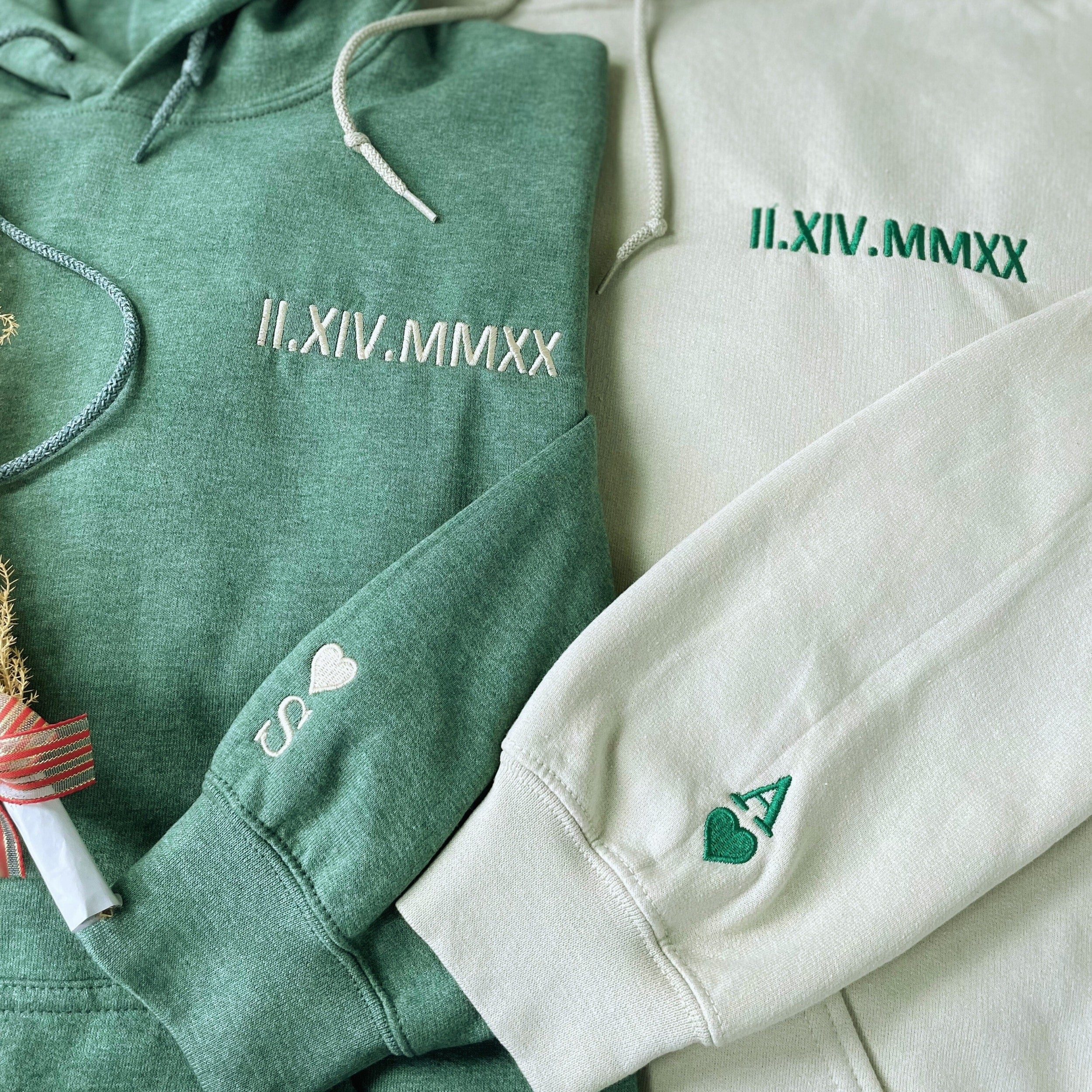 Custom Embroidered Anniversary Year Hoodie Sweatshirt – Personalized Couples Gift