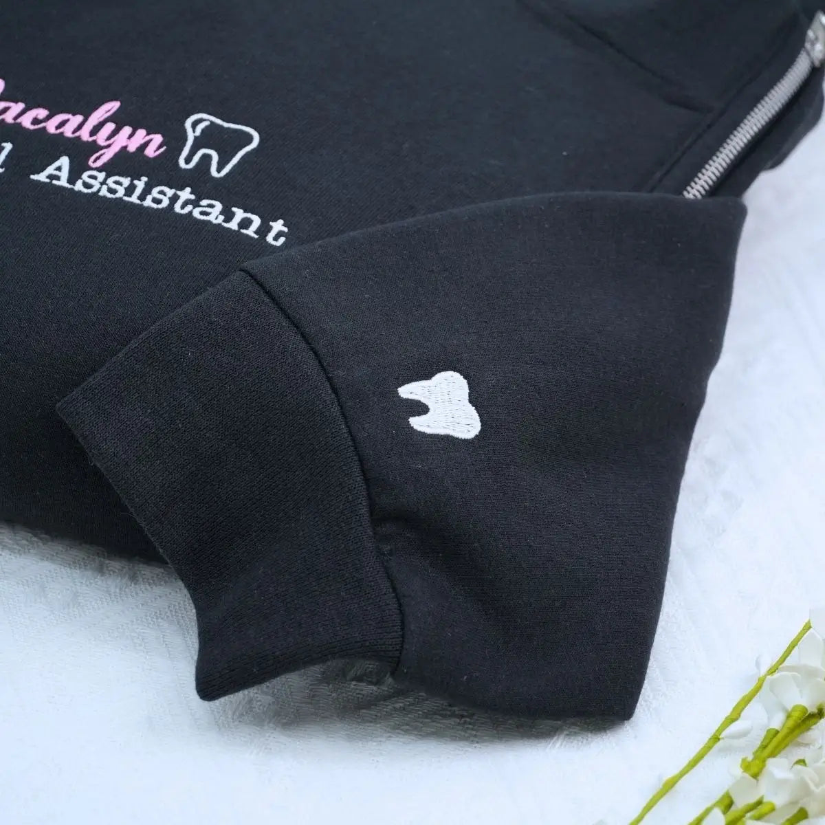 Celebrate your professionalism with this custom embroidered Dental Assistant Quarter Zip Sweatshirt. Ideal for dental assistants students or clinic teams this cozy sweatshirt offers all day comfort with a stylish quarter zip design. Personalize it with your name or custom icon for a unique look that reflects your identity in the dental field. Perfect for everyday wear or as a thoughtful gift this sweatshirt is a statement of pride and purpose in the dental profession.