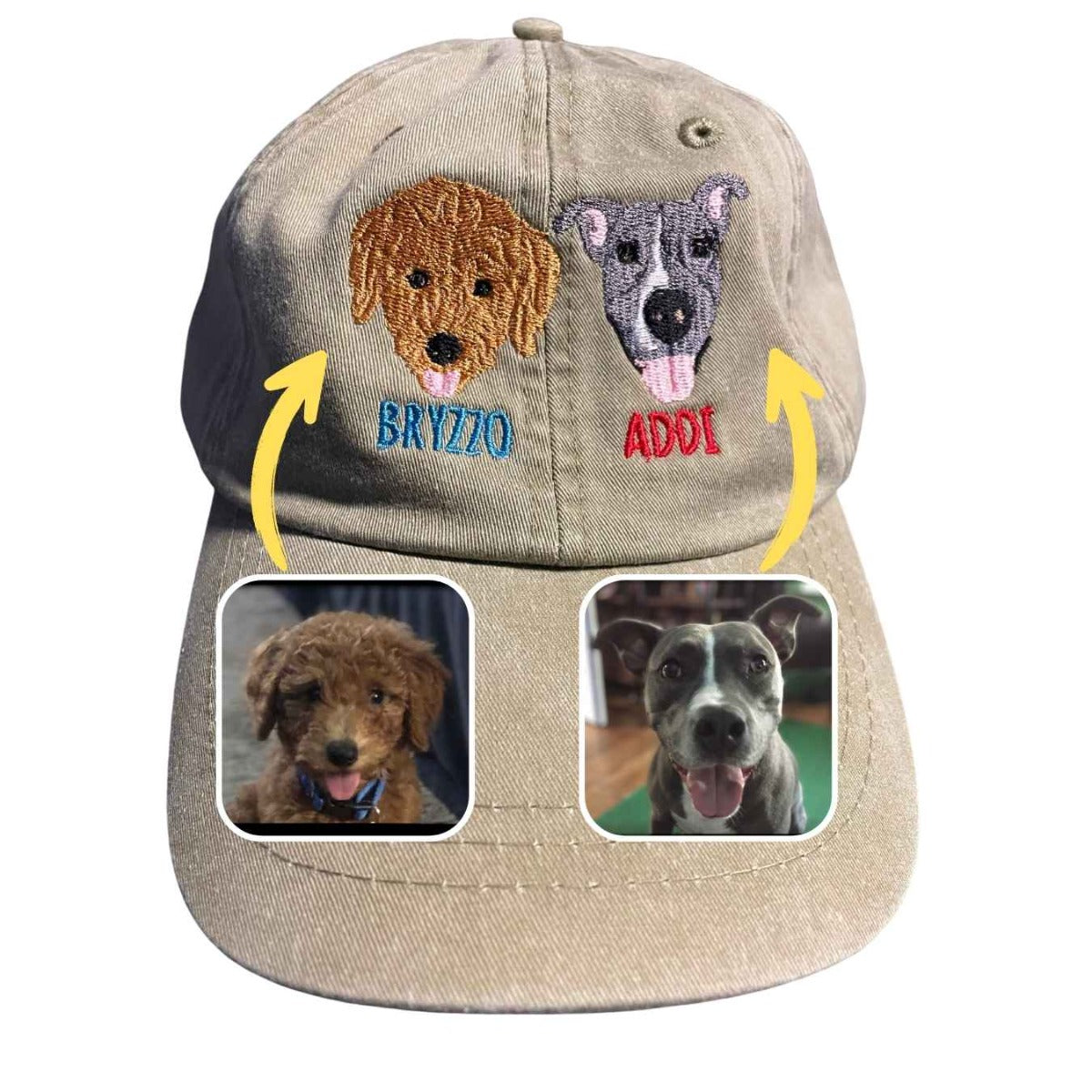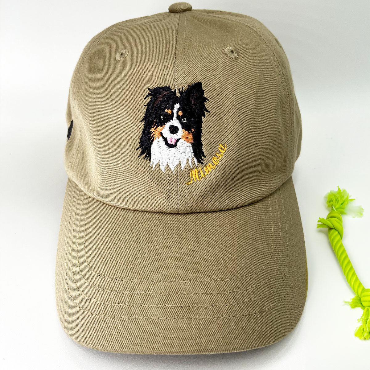 Elevate your style with our Custom Embroidered Pet Hat featuring the charming dog design seen on your favorite sweatshirt. This hat is a must have for dog enthusiasts offering a playful and fashionable way to flaunt your beloved design while adding a coordinated touch to your daily attire. Crafted with premium materials this dad hat delivers a comfortable laid back fit suitable for any casual setting. The adjustable strap ensures a personalized fit while the intricate dog embroidery adds a whimsical and personalized touch. Whether youre out for a stroll running errands or simply relaxing this hat effortlessly complements your fashion sense. Incorporate this embroidered dad hat into your wardrobe for a stylish and cohesive appearance that reflects your adoration for dogs. Its the perfect accessory to elevate your ensemble and express your individuality.