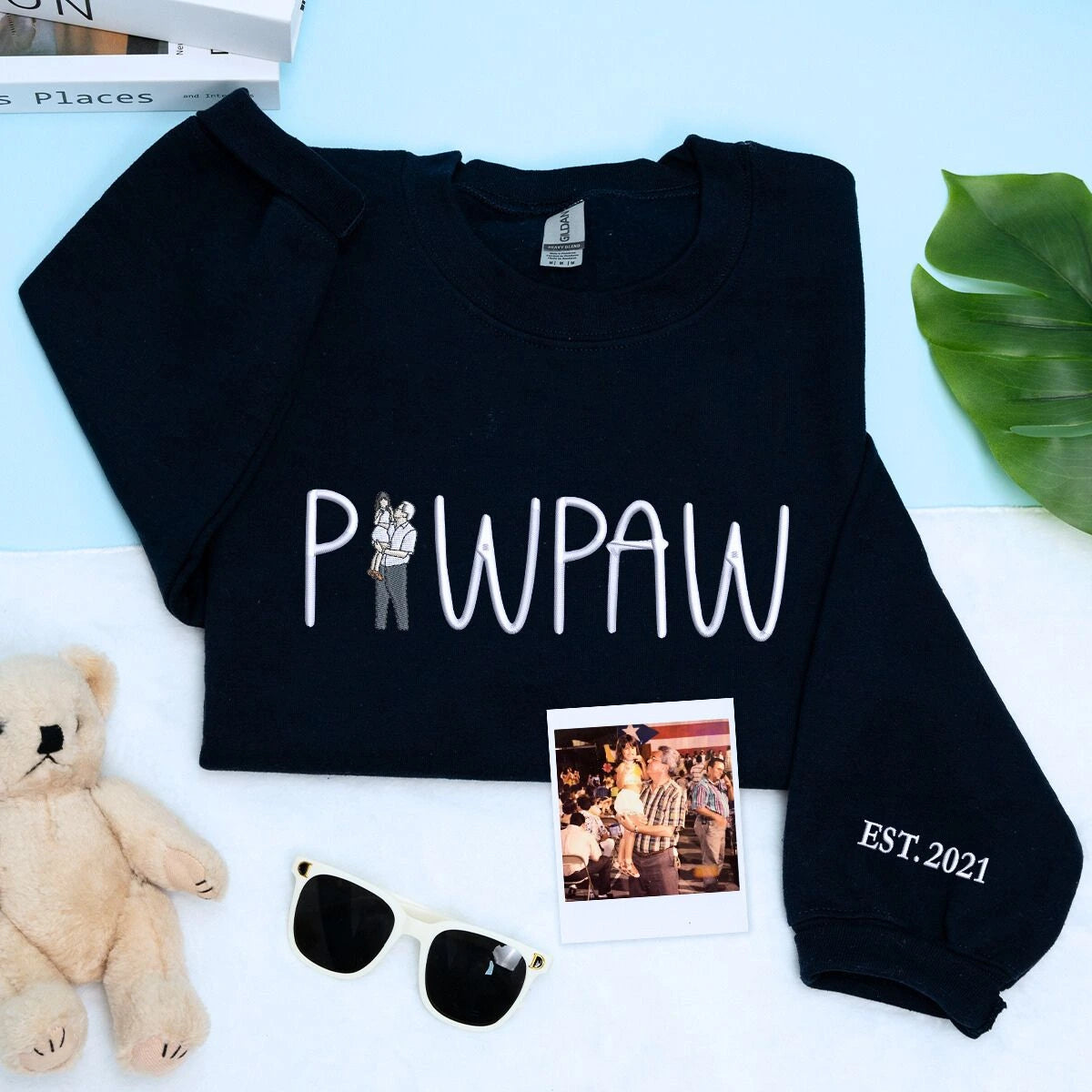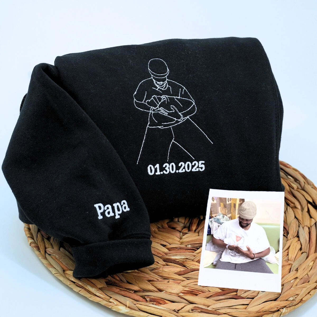 Custom Portrait Embroidered Grandpa Sweatshirt or Hoodie is a unique and heartfelt gift to celebrate Grandpa. Personalized with his grandchilds name on the sleeve this custom embroidered clothing showcases a cherished photo granting him wearable art filled with love and memories. Made of soft cotton blend fleece this unisex sweatshirt ensures comfort and style ideal for daily wear. Express your love on Fathers Day birthdays or any special occasion with this one of a kind personalized present.