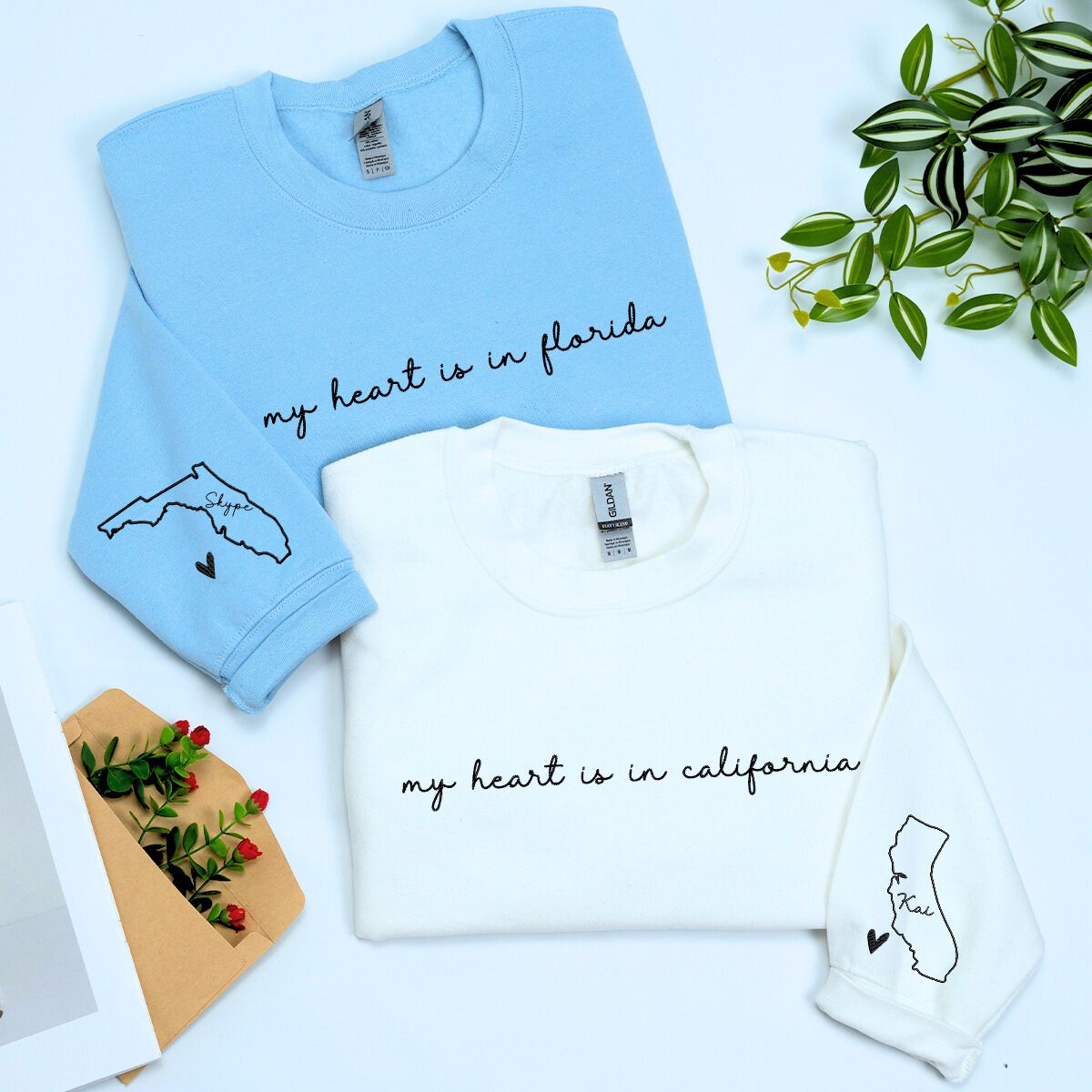 Custom State Map Sweatshirt or Hoodie for Long Distance Couples