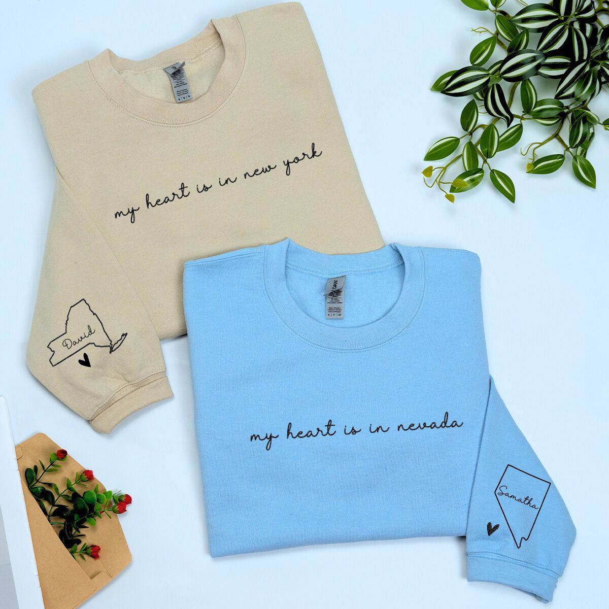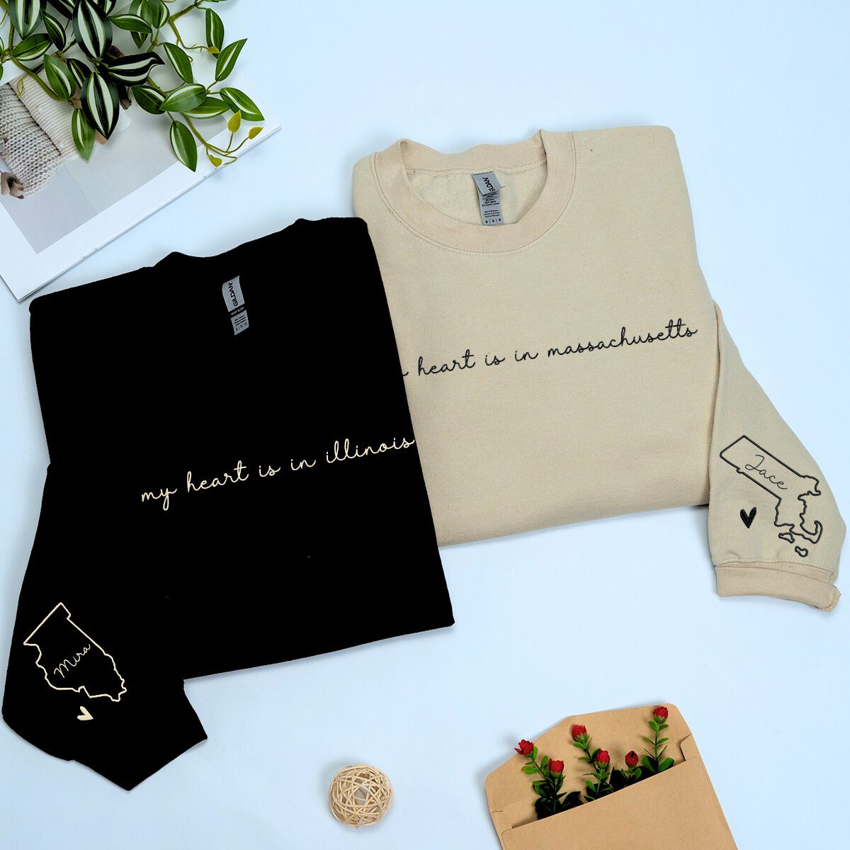 Express your endless love with our Custom State Map Sweatshirt or Hoodie designed for long distance couples. This heartfelt piece features an embroidered state couple map symbolizing your bond across miles. Ideal for special occasions like anniversaries or Valentines Day this cozy garment is a cherished way to carry your love story every day. Crafted with premium materials for comfort and durability make every moment count with this personalized keepsake.