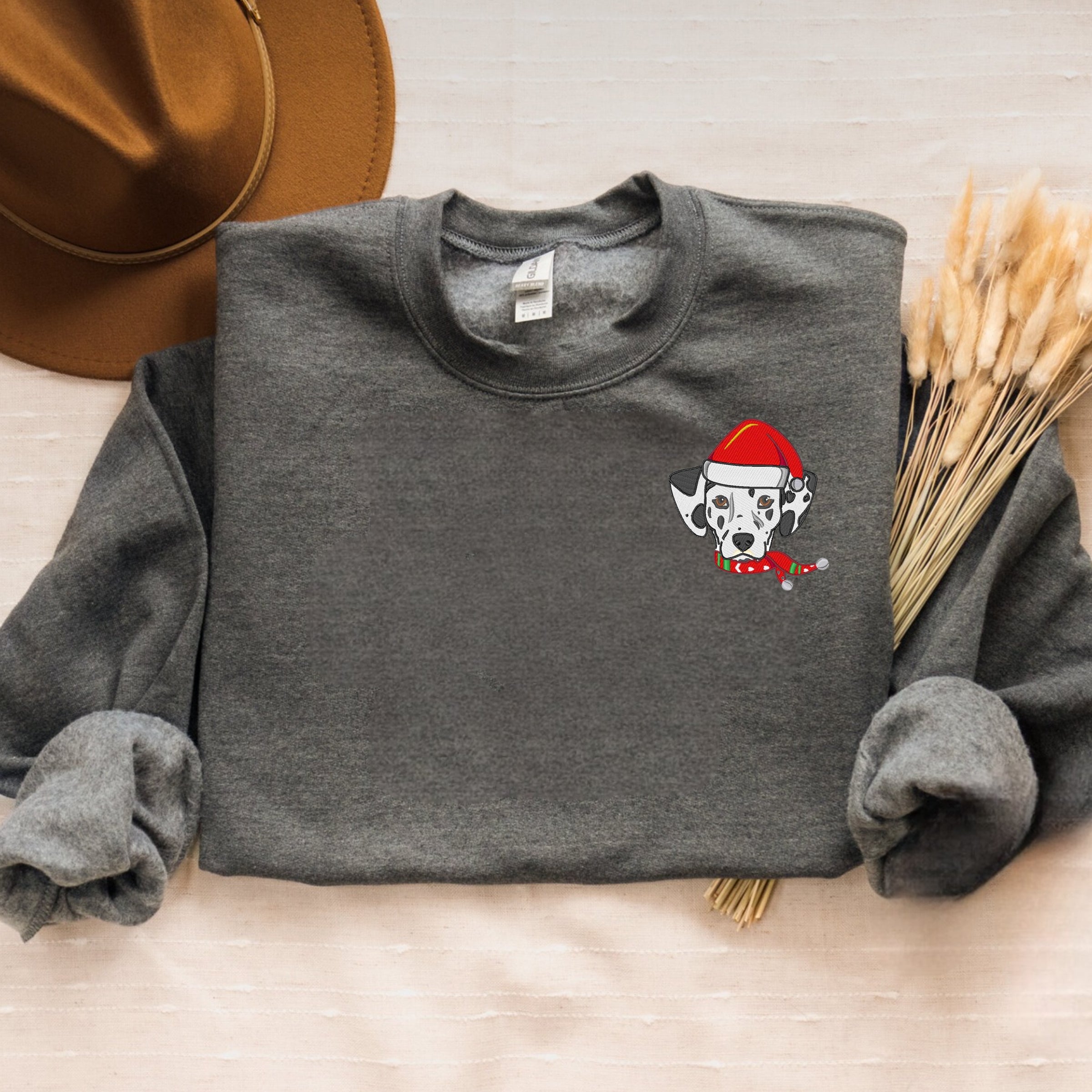 Embroidered Christmas Dalmatian Sweatshirt – Festive Dog Santa Hoodie
