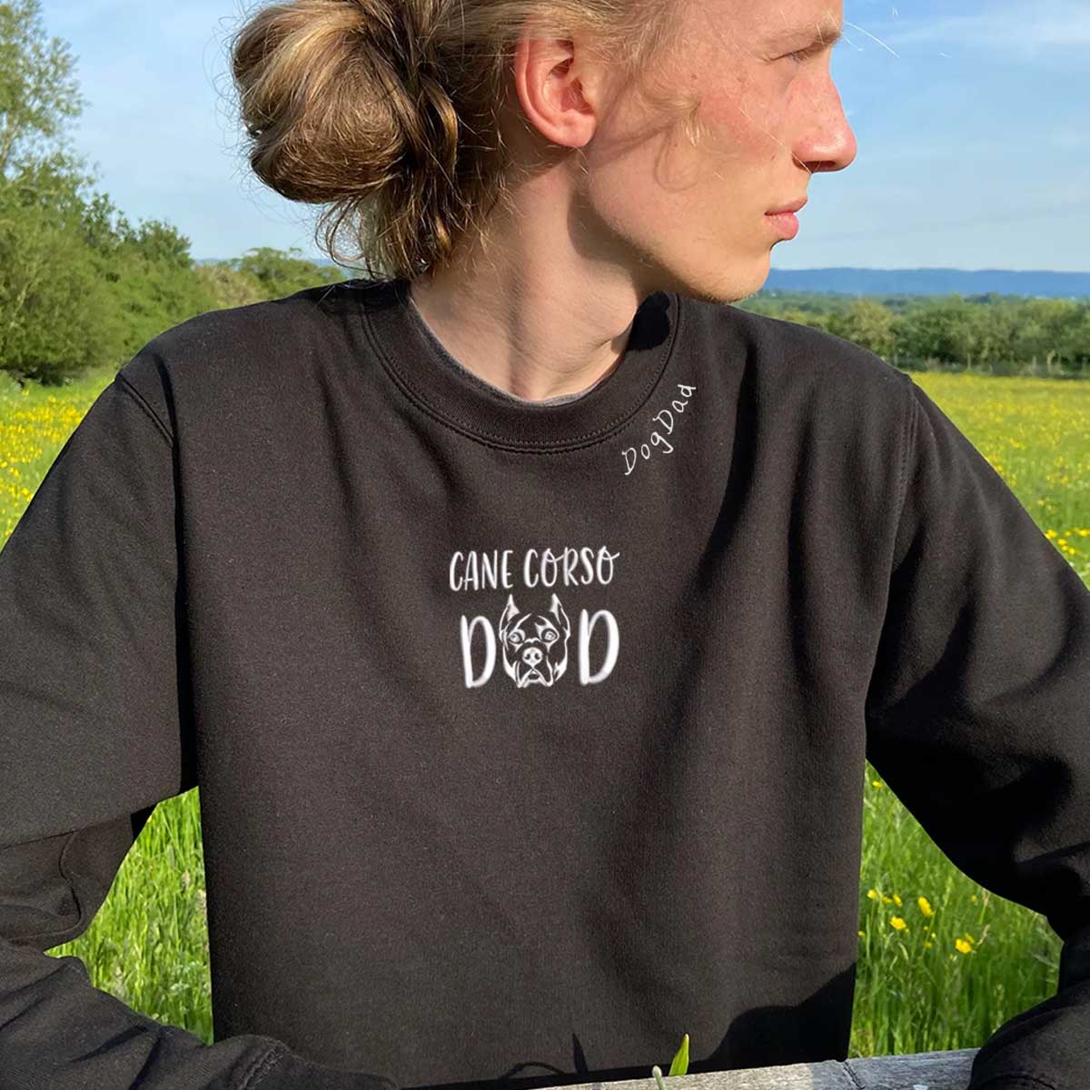 Looking for a heartfelt gift for a Dog lover? Explore our Custom Cane Corso Dog Dad Embroidered Collar Sweatshirt. This unique sweatshirt can be personalized with your Dogs name and features an embroidered Cane Corso Dog image on the collar. Whether for Christmas Halloween or Fathers Day this custom sweatshirt is a special choice for Dog owners. Surprise the Dog loving dad in your life with this thoughtful and personalized Fathers Day gift idea that showcases your love for furry friends.