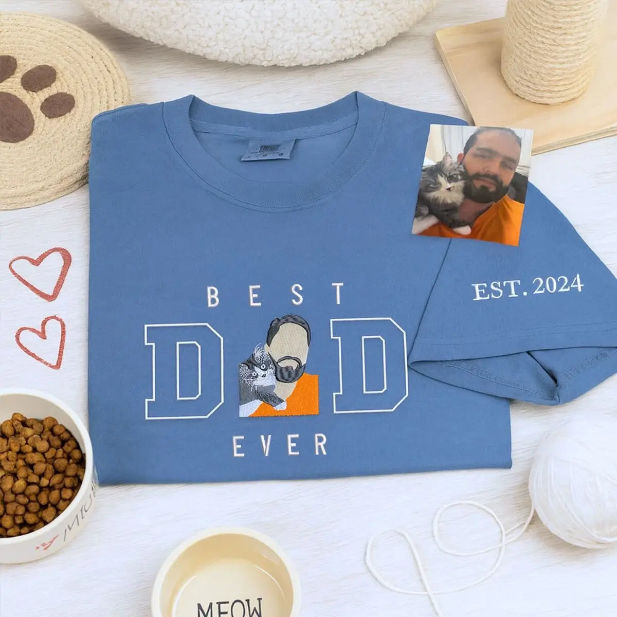 Express your love for your furry friend with our Personalized Cat Dad Embroidered Sweatshirt featuring your cats portrait. Made from soft breathable fabric with quality embroidery this shirt is a heartfelt gift for cat dads offering a comfortable fit for daily wear. Whether for Fathers Day birthdays or special surprises its a touching way to show your devotion to your feline companion. Upload your cats photo and make it uniquely yours today.