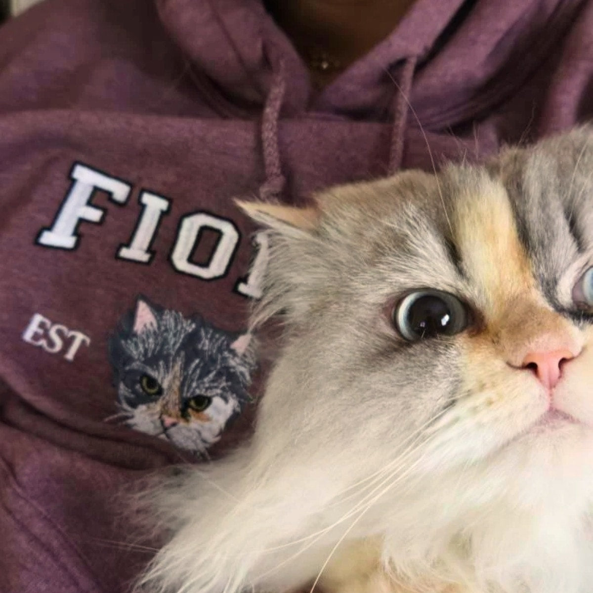 The personalized cat face embroidered sweatshirt is a purr fect present for feline enthusiasts. Embrace the unique bond with your cat by submitting a photo for intricate embroidery creating a bespoke masterpiece. Designed for both comfort and style this sweatshirt is a daily essential that symbolizes the special connection between you and your pet. Cherish the joy of feline companionship with this unique personalized cat hoodie meticulously crafted with quality materials to honor your beloved pet.