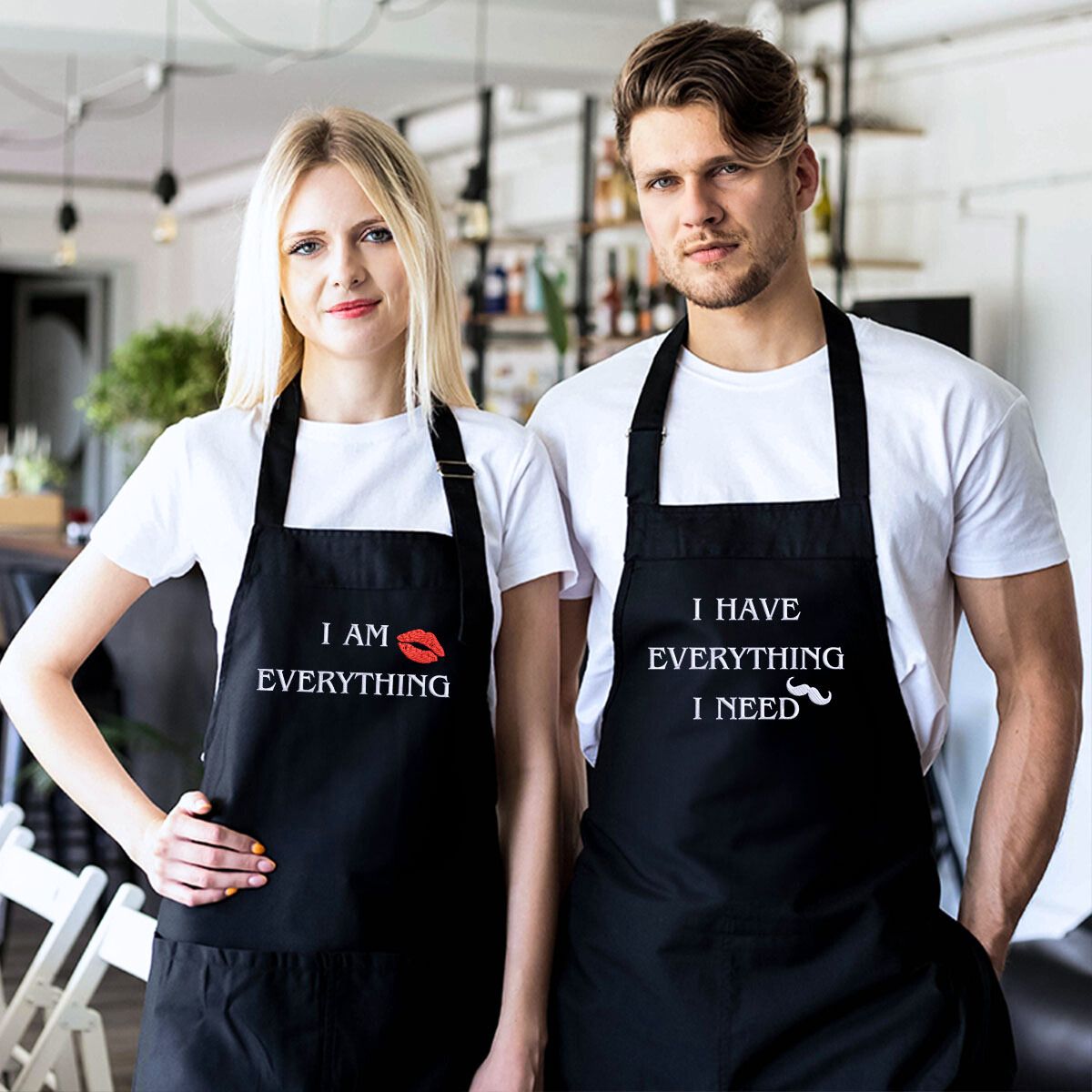 Personalized Chef Couple Aprons Set, Custom Embroidered Kitchen Wear