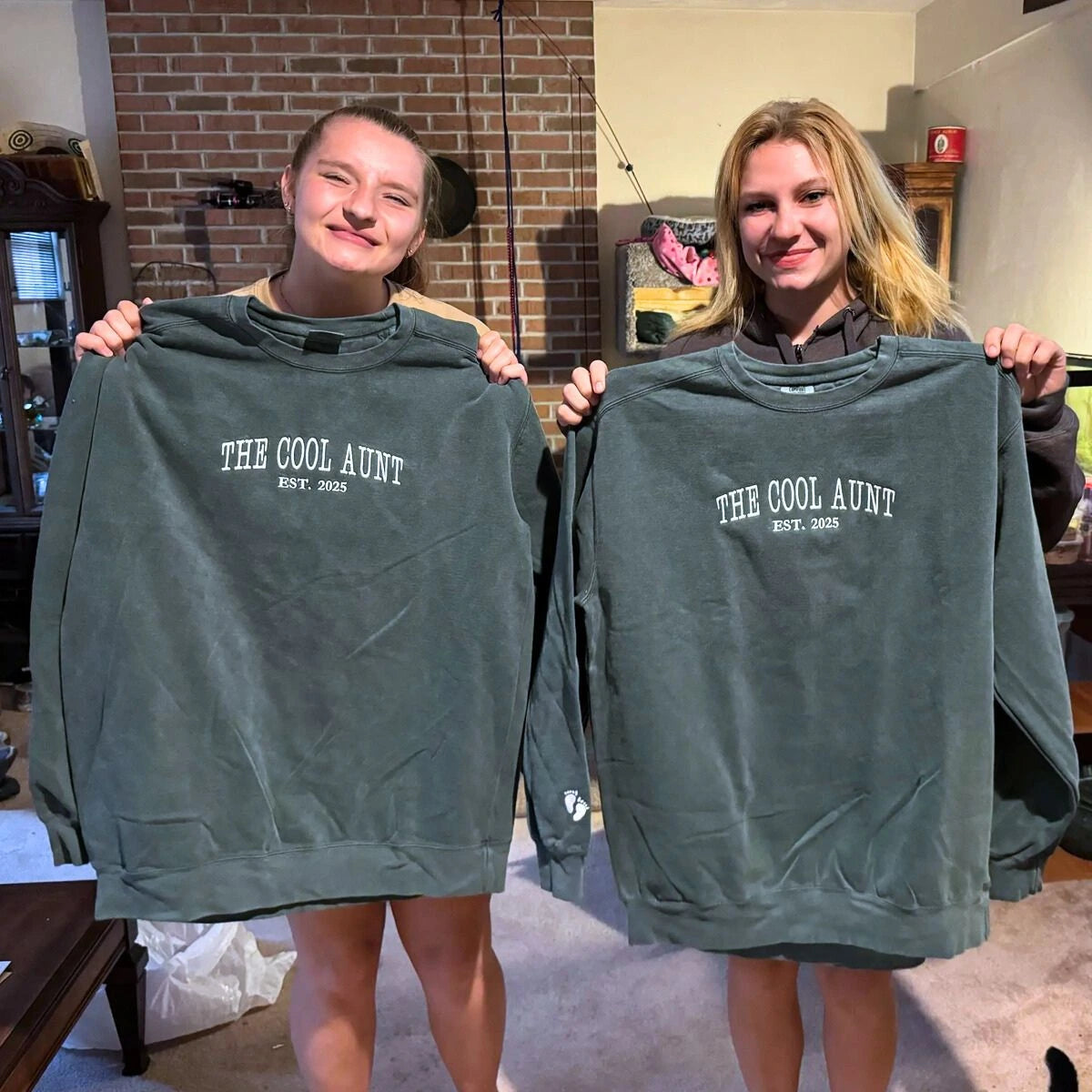 Celebrate the pride of being an aunt with this custom embroidered Cool Aunt Sweatshirt featuring a personalized Est. year and names of nieces/nephews. Perfect for new and experienced aunts alike this cozy sweatshirt is a stylish sentimental gift ideal for baby announcements birthdays Mothers Day or any special occasion. Made with premium fabric this customizable sweatshirt blends comfort with style creating a lasting keepsake for beloved aunts everywhere. Order now for a unique gift that honors the special aunt in your life.