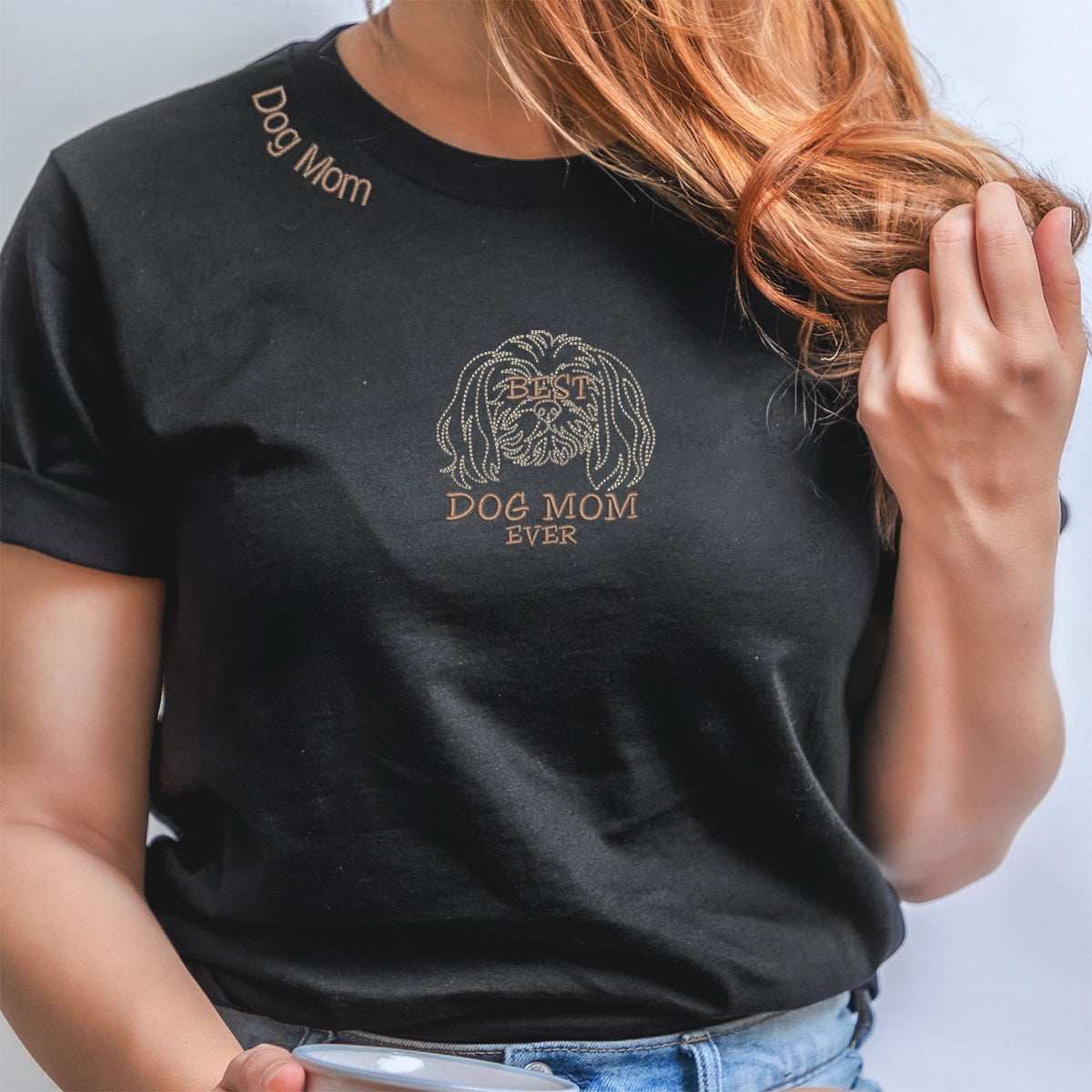 Personalized Dog Mom Embroidered Collar Tee | Best Shih Tzu Lover Gift