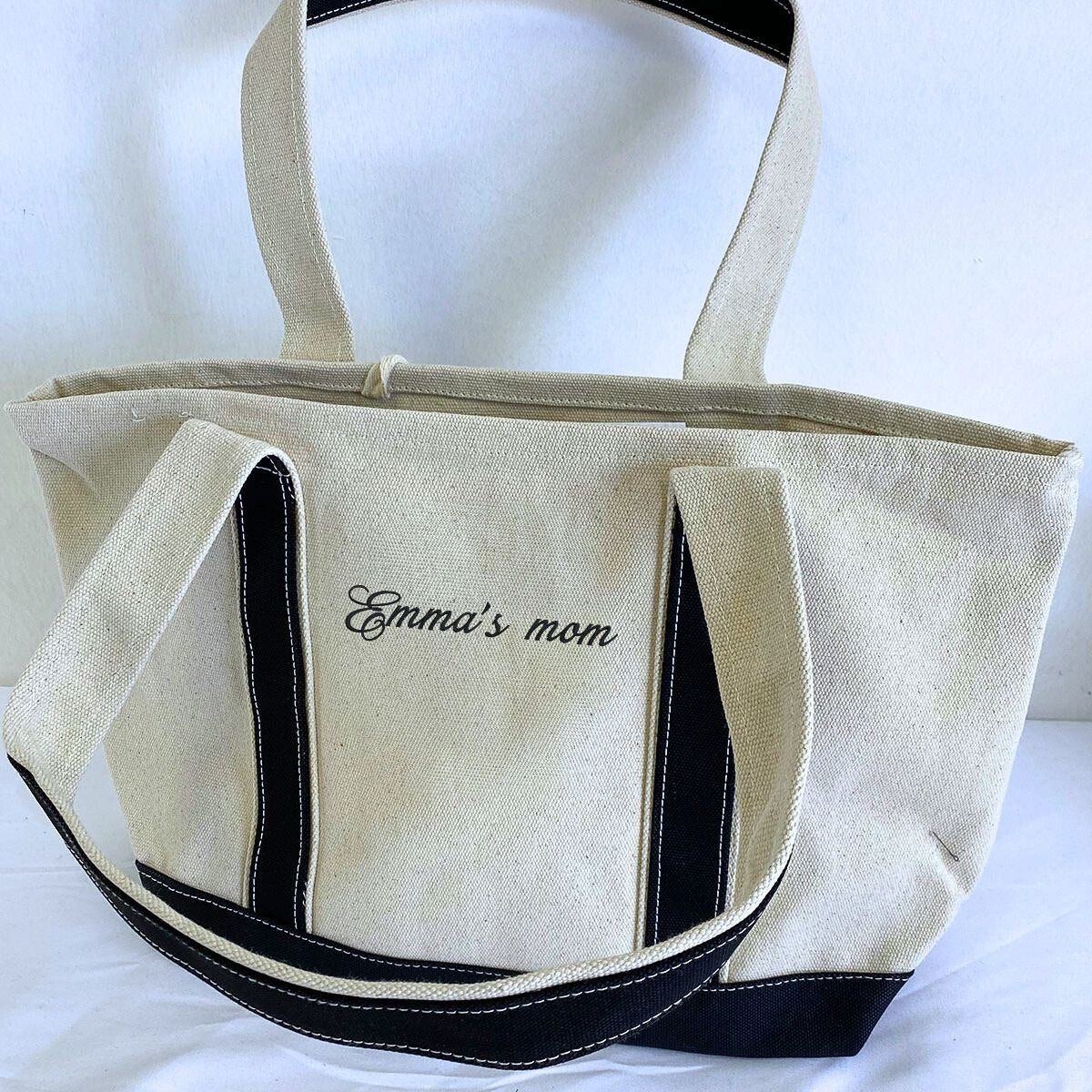 Personalized Embroidered Canvas Tote Bag, Custom Text Gift for Her