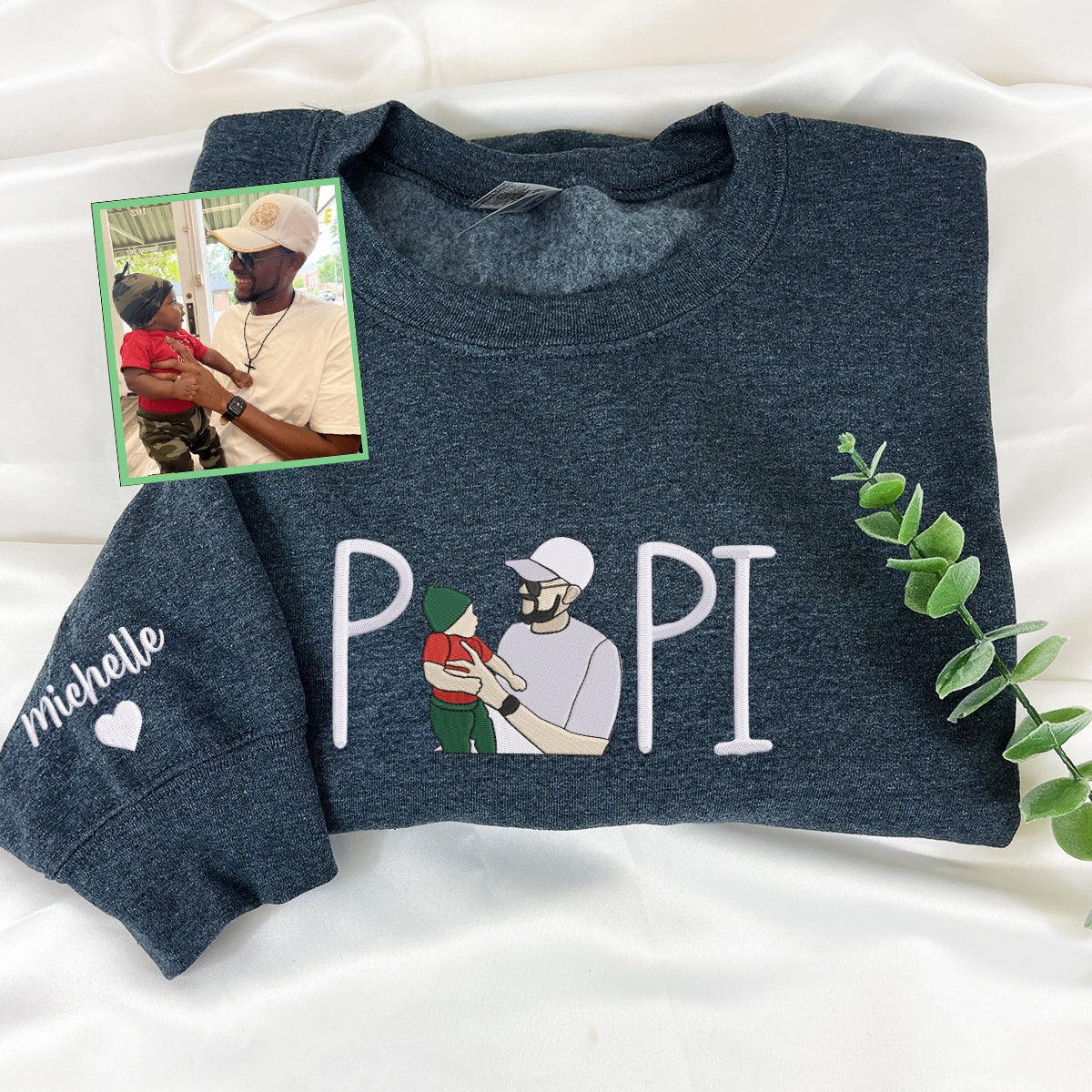 Capture a memorable moment with the Comfort Color® Personalized Dad Portrait Embroidered Sweatshirt. Crafted with high quality fabric this durable and comfortable sweatshirt features a beautifully embroidered outline of your dads photo making it a unique wearable art piece. Add personalized text next to the portrait for a thoughtful touch. Perfect for birthdays holidays or any day to show Dad your love and appreciation. Celebrate with this exclusive sweatshirt now.