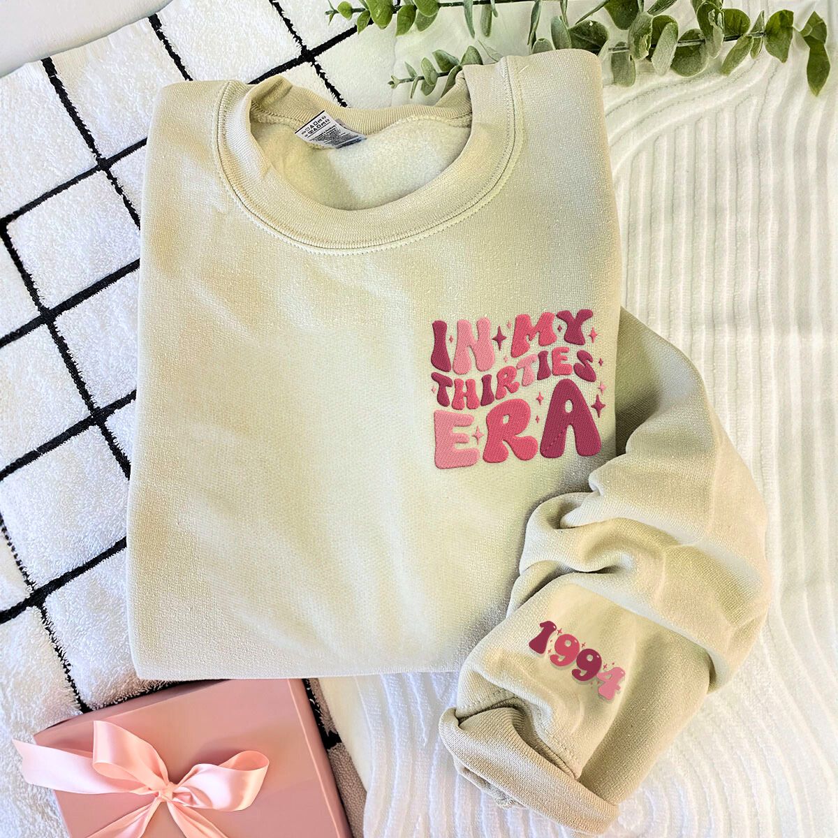 Celebrate your unique journey with our personalized embroidered era birthday sweatshirt or hoodie. This custom apparel features your chosen age era beautifully embroidered symbolizing your milestones and experiences. Embrace every stage of life confidently with our high quality comfortable fabric designed for style and all day wear. Perfect for casual outings home comfort or sparking conversations. Make it a thoughtful personalized gift for birthdays and special occasions. Embrace your era with style and pride.