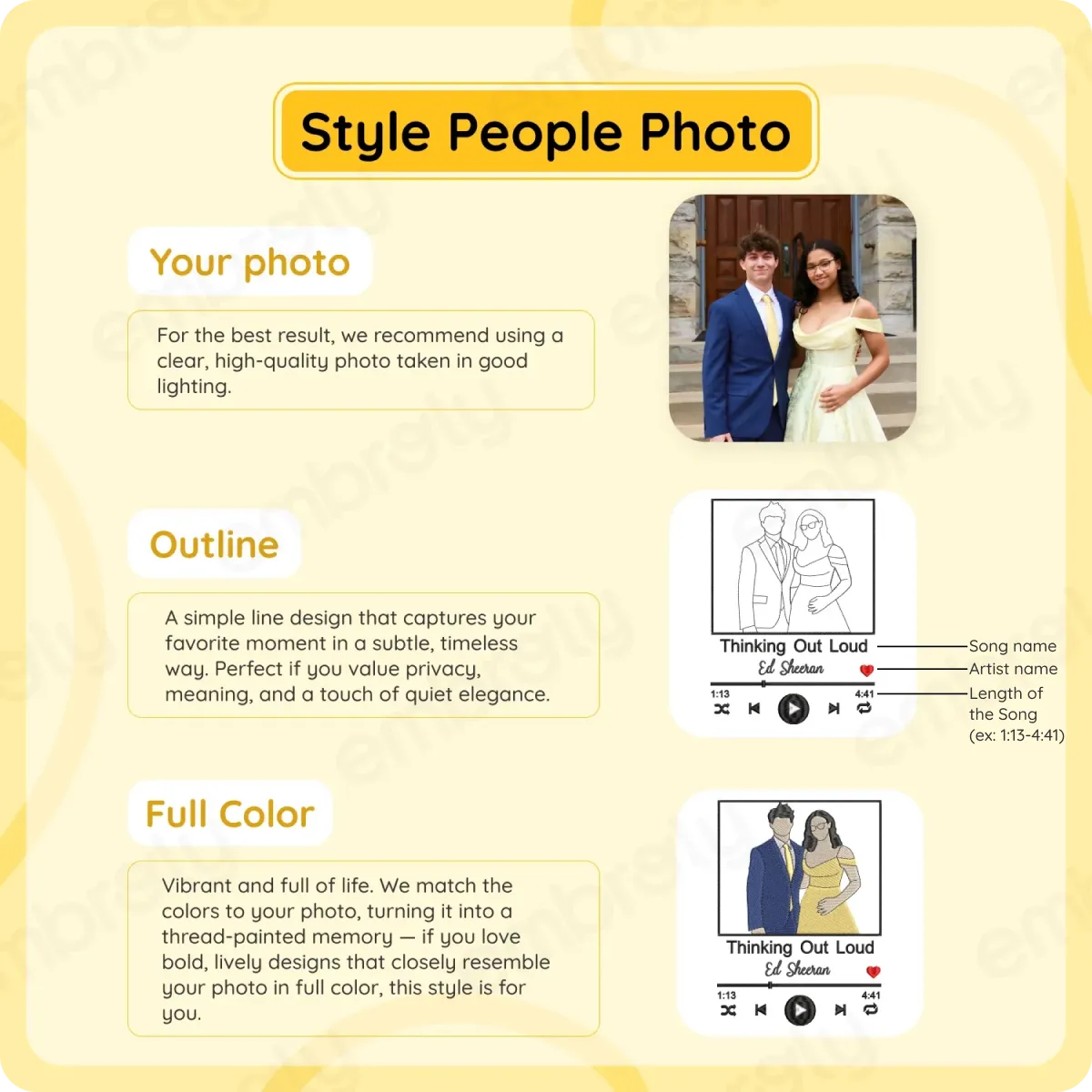 Elevate your style with our Personalized Embroidered Playlist Hoodie featuring your song title and photo design. This cozy hoodie is crafted for couples to express their love story through a unique playlist embroidery. Made from premium soft fabric it keeps you comfortable while adding a personal touch to your wardrobe. Celebrate special moments with this heartfelt hoodie that makes a perfect gift for music lovers on anniversaries Valentines Day or any occasion. Create a lasting memory with your own custom photo and song combination. Experience the craftsmanship and comfort of our exclusive Custom Playlist Hoodie today.