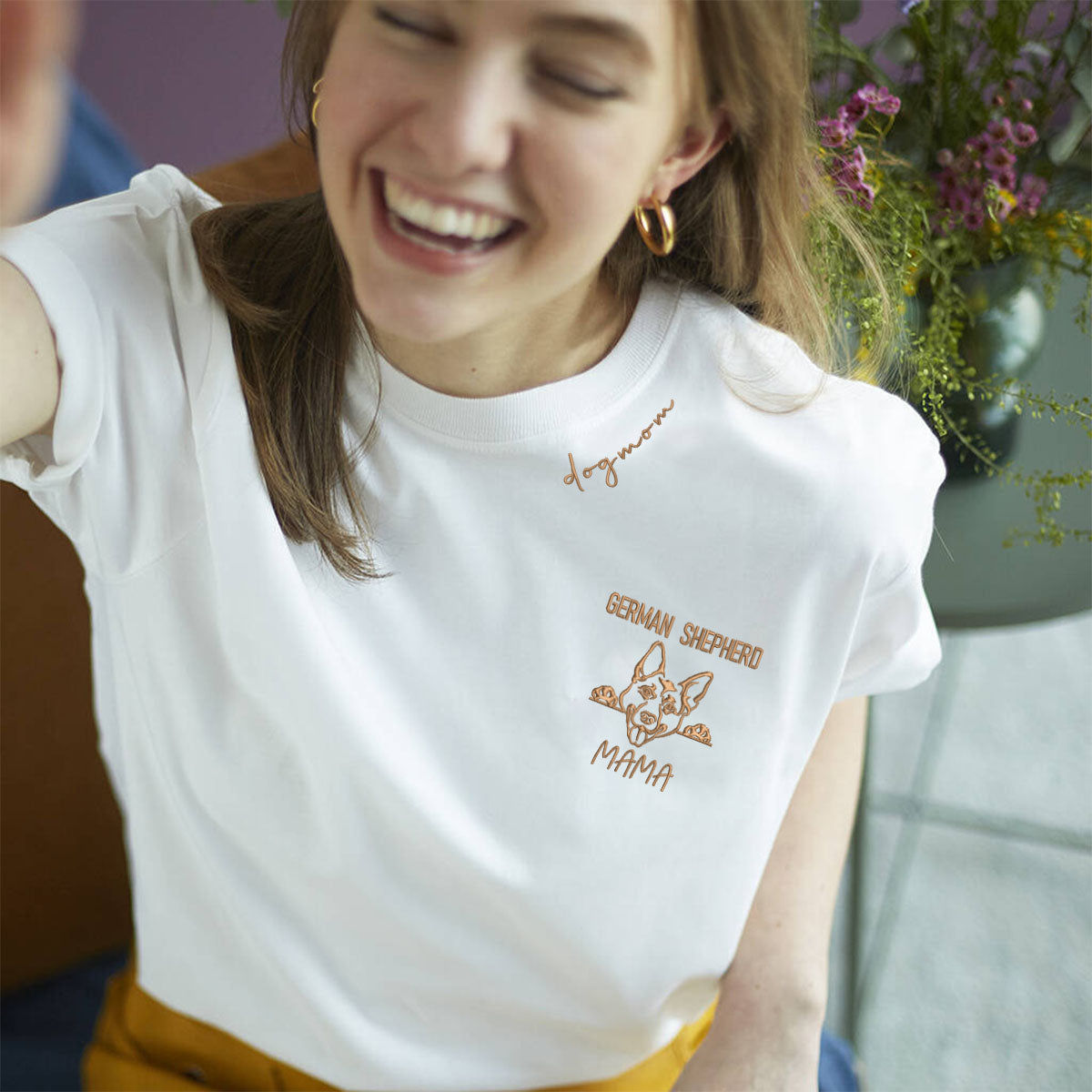 Express your love for your furry friend with our Personalized German Shepherd Embroidered Collar Shirt. This unique shirt features an embroidered design personalized with your German Shepherds name. Made from high quality and durable materials its comfortable for everyday wear. Whether for a casual outing or a special event this shirt is a perfect gift for any dog lover. Show your appreciation for the bond between a mother and her loyal companion with this heartfelt gift.