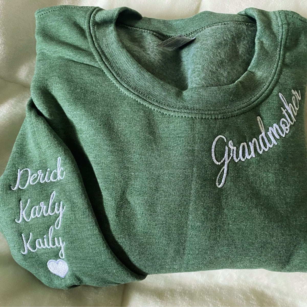 Personalized Grandkids Names Grandma Sweatshirt – Custom Embroidered Legacy Gift