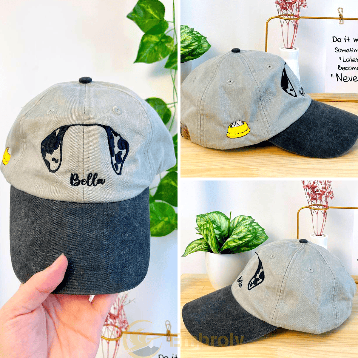 Elevate your style with our custom embroidered dyed hat featuring your pets photo and name. Honor your furry friend everywhere you go. Lightweight and comfortable this hat is a perfect blend of fashion and sentiment. Design your unique hat effortlessly by choosing the photo and font. The high quality embroidery ensures a lasting memory. Surprise pet lovers with this thoughtful gift on any occasion. Dont miss the chance to showcase your love for your pet in a trendy way.