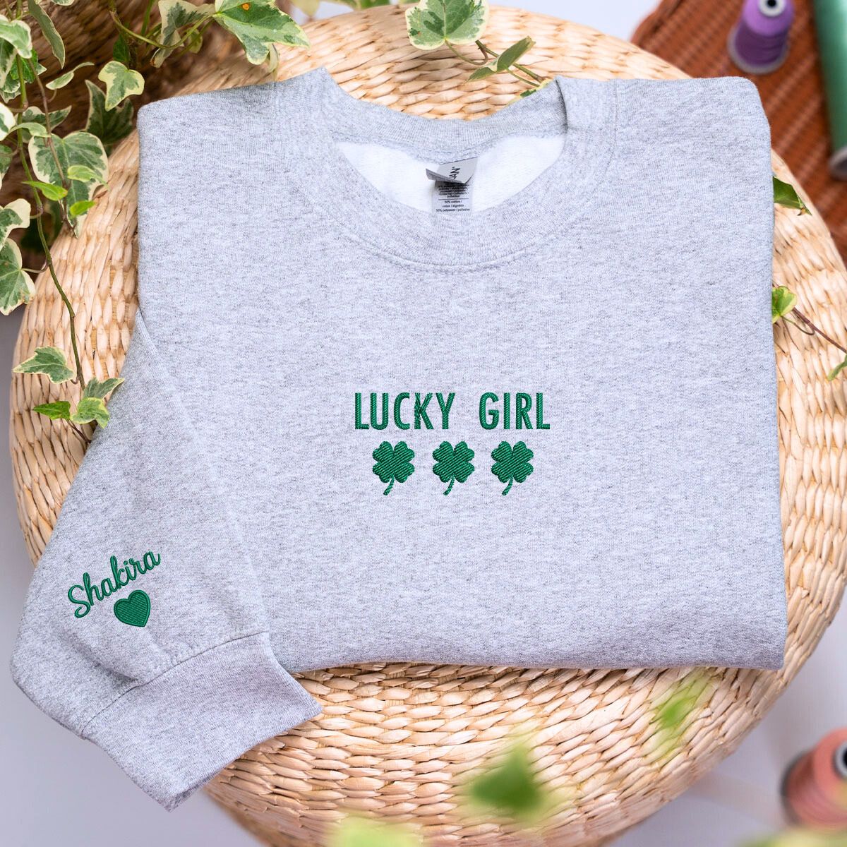 St Patricks Day Lucky Girl Shamrock Sweatshirt or Hoodie