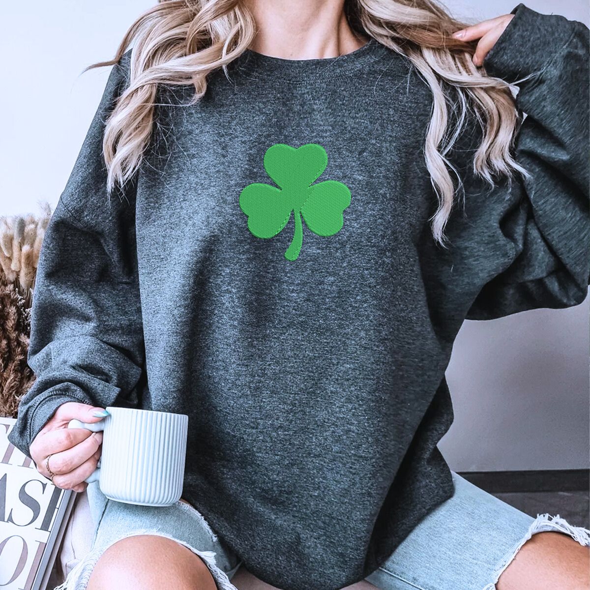 St Patricks Day Shamrock Embroidered Sweatshirt or Hoodie
